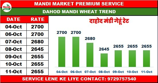 गेहूं भाव ₹2675 मंदी ₹15 (मंडी पेड 1% CD)
