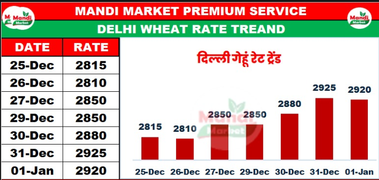 गेहूं नेट भाव ₹ 2920 तेजी ₹ 20