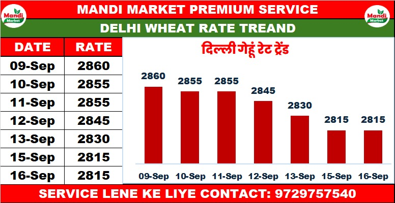 गेहूं मिल डिलीवरी नेट भाव ₹ 2650 सिर्फ 600 रुपये में 6 महीने तक Whatsapp पर भाव और रिपोर्ट पाने के लिए 9729757540 पर मैसेज करे |
