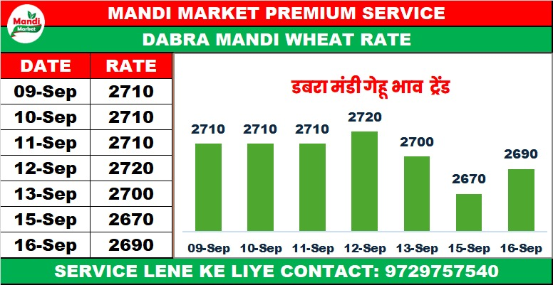 गेहूं 303 क्वालिटी भाव ₹ 2700 मंदी ₹ 25
