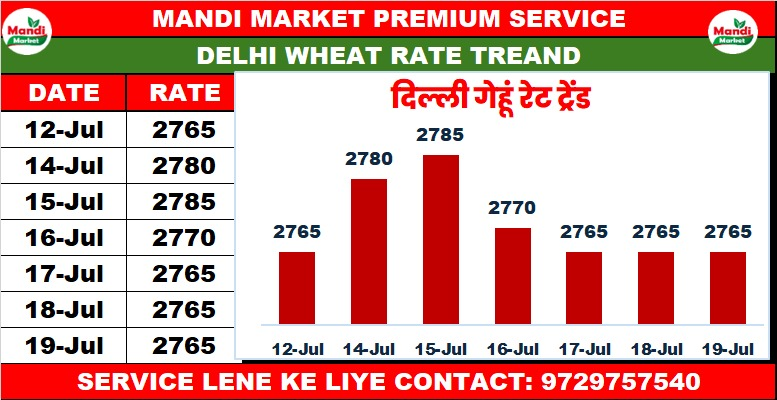 गेहूं राजस्थान नेट भाव ₹ 2750 मंदी ₹ 0