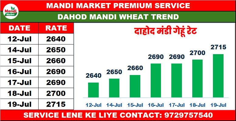 मिल गेहूं भाव ₹ 2650/2750 तेजी ₹ 25