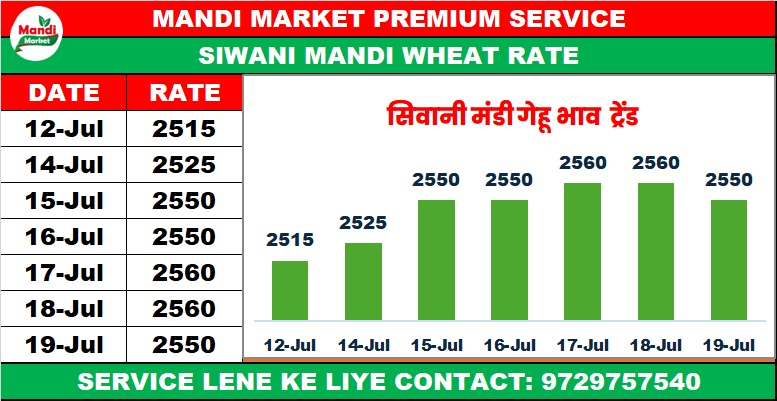 गेहूं भाव ₹ 2530 से ₹ 2540 मंदी ₹ 0