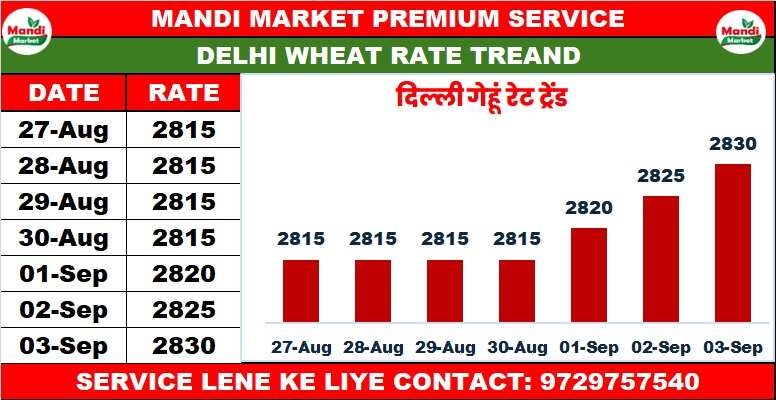 राजस्थान लाइन गेहूं का भाव ₹ 2825 से ₹ 2830 तेजी 5