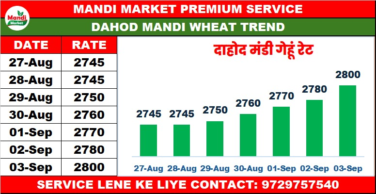 एमपी लाइन गेहूं का भाव ₹ 2825 से ₹ 2830 तेजी 5