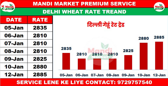 मिल क्वालिटी गेहूं भाव ₹2650 तेजी ₹35