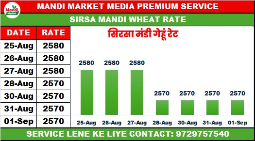 गेहूं ITC क्वालिटी भाव ₹ 2580/2600