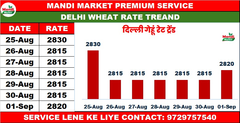 राज लाइन गेहूं भाव ₹ 2820 तेजी ₹ 5