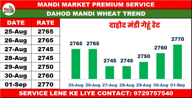गेहूं भाव ₹ 2730 तेजी ₹ 10 (मंडी पेड 1%)