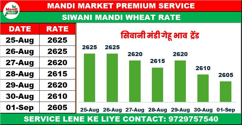 गेहूं मिल क्वालिटी भाव ₹ 2600/2625