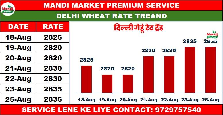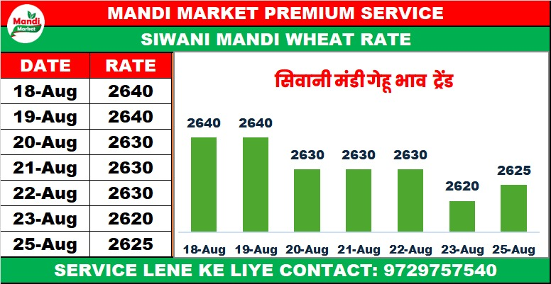 गेहूं मिल क्वालिटी भाव ₹ 2625/2630