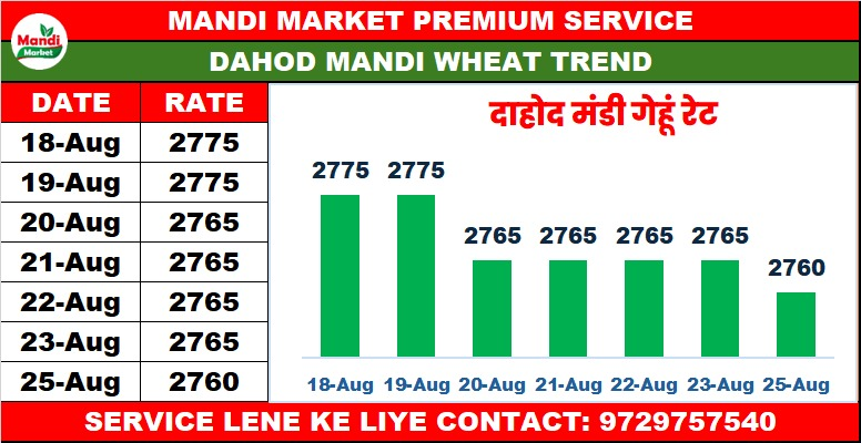 गेहूं भाव ₹ 2740 (1% CD, मंडी पेड)