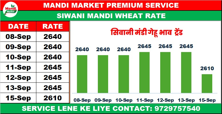 मिल क्वालिटी गेहूं भाव ₹ 2640 मंदी ₹ 30