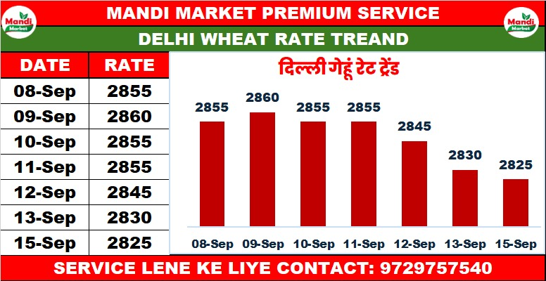 दिल्ली में आज 2825 में बिका गेहूं | जाने बाकी मंडियों में क्या रहा गेहूं का रुझान