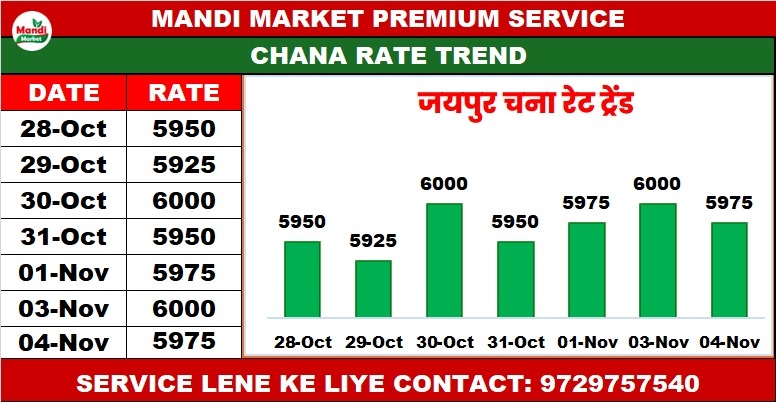 चना कर्नूल लाइन भाव ₹ 5925 से ₹ 5950 मंदी ₹ 50