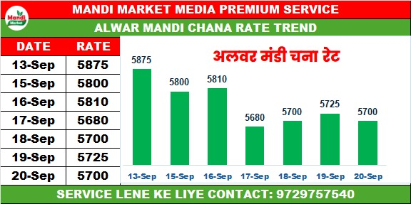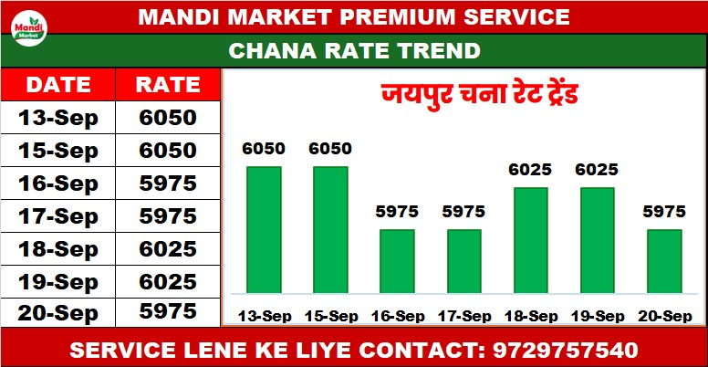 चना मिल क्वालिटी भाव ₹ 5900 से ₹ 5950 मंदी ₹ 50