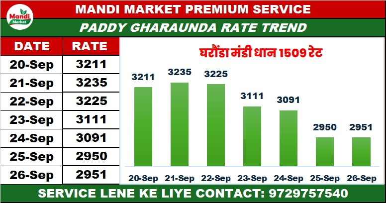 धान 1509 हाथ भाव ₹ 3080 मंदी 1