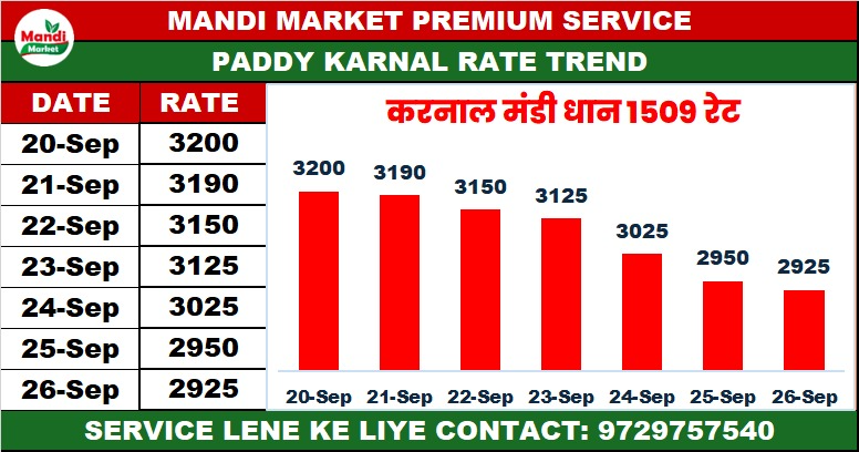 धान 1509 भाव ₹ 2500/2925 मंदी ₹ 25