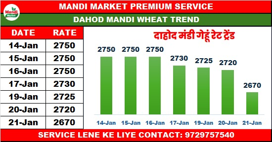 गेहूं बाजार (Wheat Bazar) भाव ₹2670 ↓ मंदी ₹50