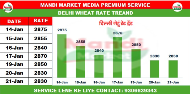 गेहूं (WHEAT) नेट (NET) भाव ₹2850 मंदी ₹50