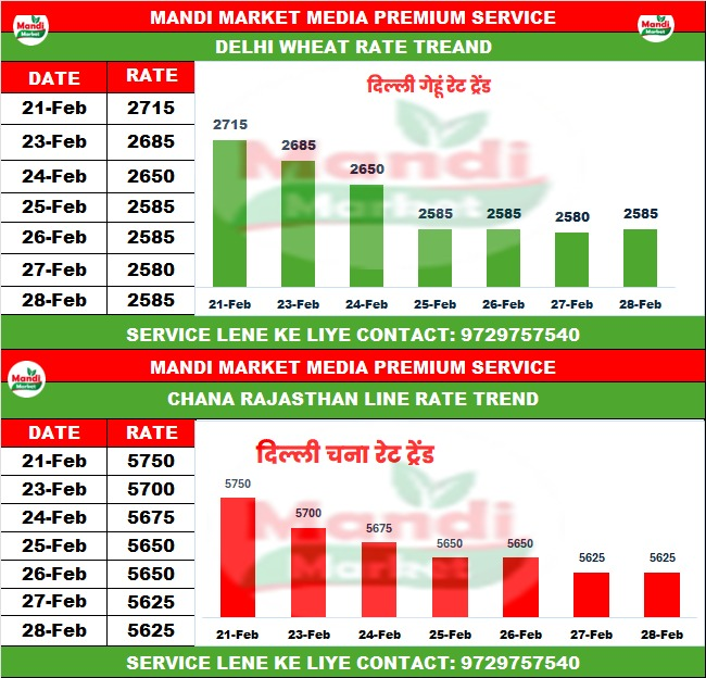 गेहूं 1% छूट (WHEAT 1% DISCOUNT) भाव ₹2550 ↓ मंदी ₹20