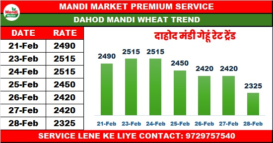 गेहूं बाजार (WHEAT BAZAR) भाव ₹2325 ↓ मंदी ₹95