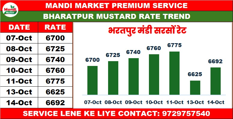 सरसों भाव ₹ 6692 तेजी ₹ 67