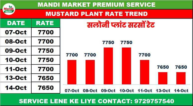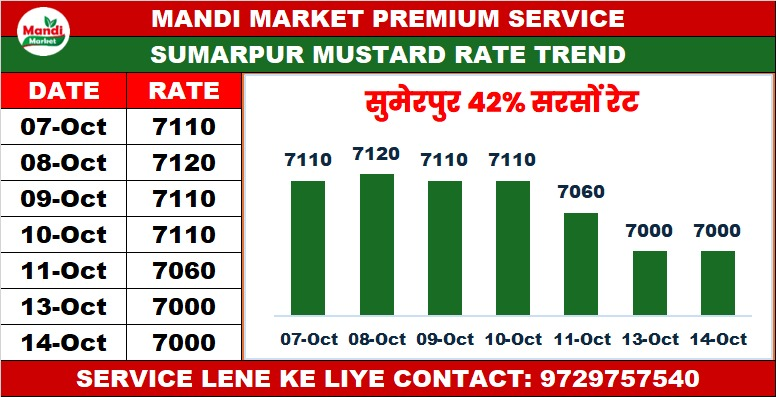 सरसों 42% कंडीशन भाव ₹ 6990/7000 स्थिर