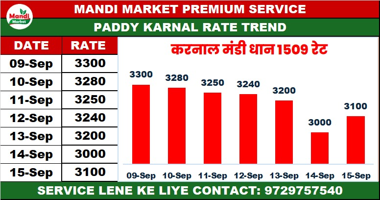 धान 1509 भाव ₹ 2600 से ₹ 3160