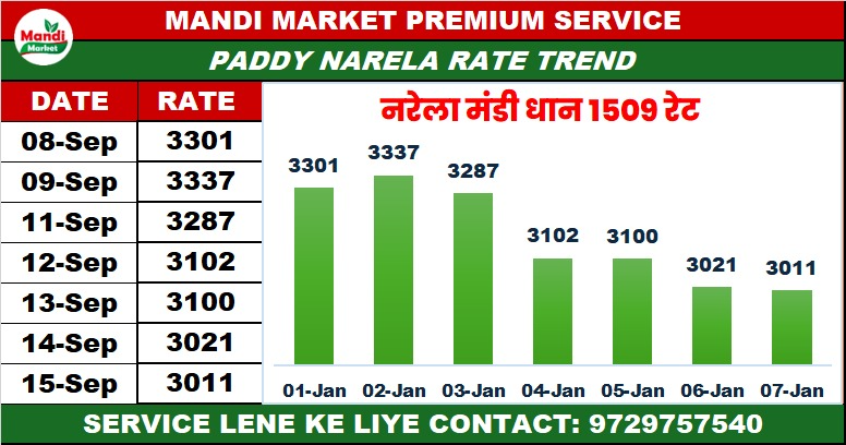 धान 1509 भाव ₹ 3065 तेजी ₹ 54