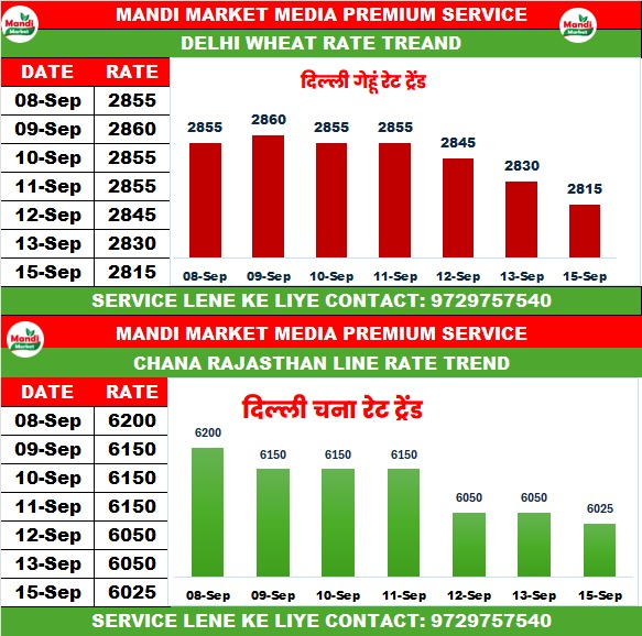 राजस्थान लाइन गेहूं का भाव ₹ 2810/2815 मंदी 10