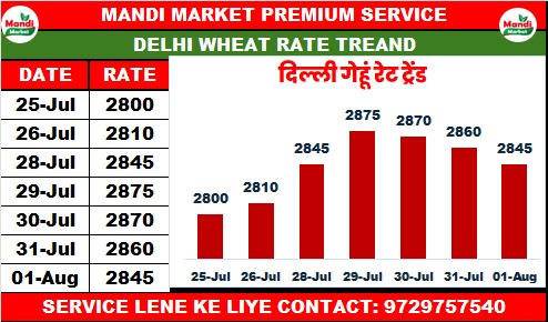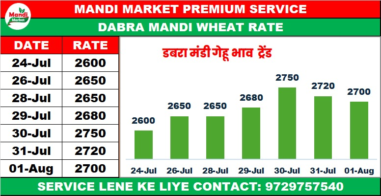 गेहूं मिल क्वालिटी भाव ₹ 2700 मंदी ₹ 20