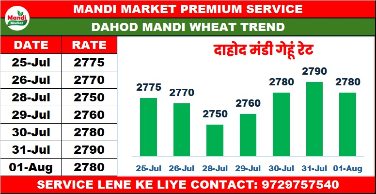 गेहूं मंडी (WHEAT MANDI) भाव ₹ 2780 मंदी ₹ 10