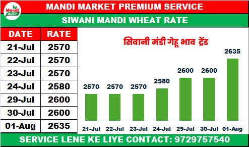 गेहूं मिल क्वालिटी भाव ₹ 2600/2650