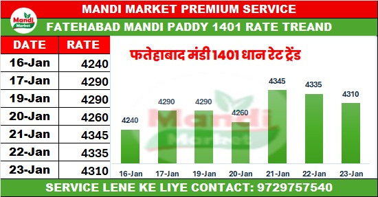 धान 1401 भाव ₹ 4310 मंदी 25