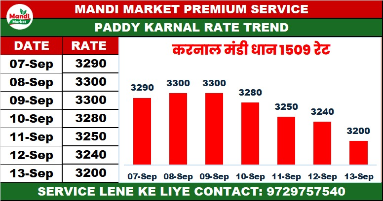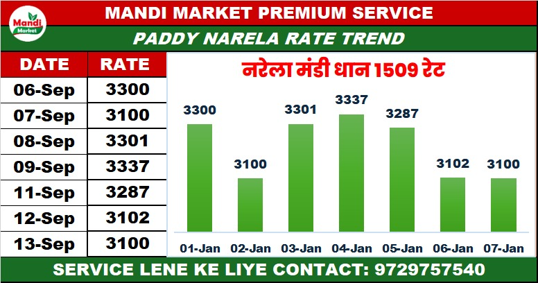 धान 1509 भाव ₹ 3071 मंदी ₹ 99