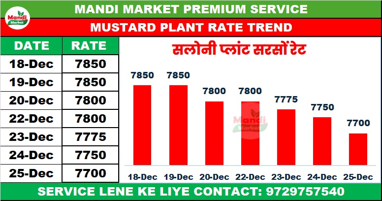 सरसों भाव ₹ 7000 मंदी ₹ 50