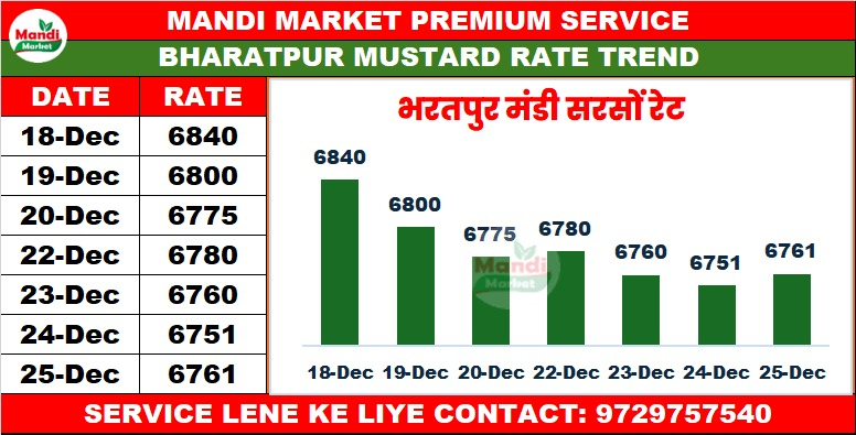 सरसों भाव ₹ 6761 तेजी ₹ 61