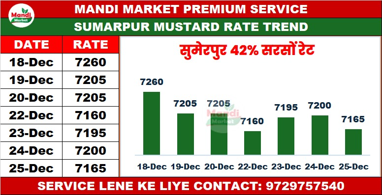 सरसों भाव ₹ 7125/7150 मंदी ₹ 25
