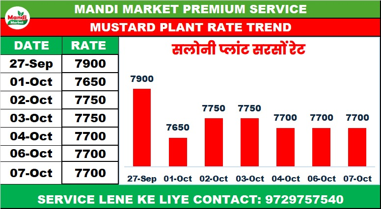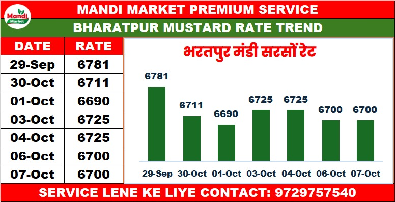 सरसों खरीद भाव ₹ 6700 + 1.5% मंडी शुल्क + ₹75 फ्रेट + GST (42%)