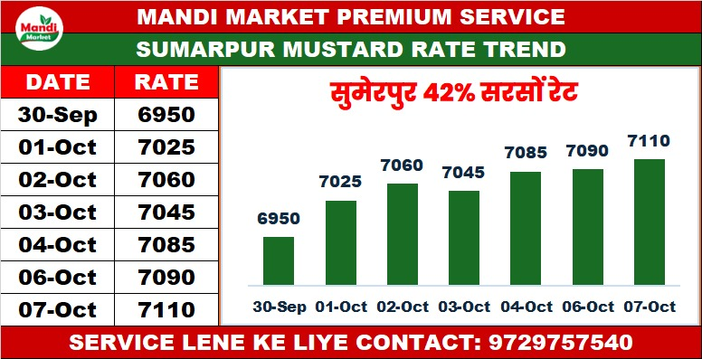 सरसों 42% कंडीशन भाव ₹ 7090 से ₹ 7110 तेजी 20