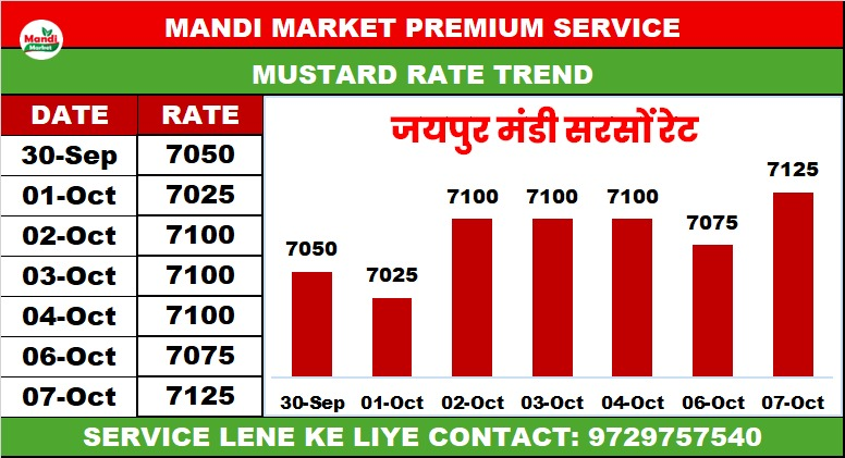 सरसों भाव ₹ 7100 से ₹ 7125 तेजी 50