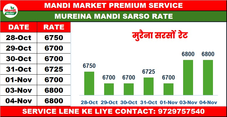 सरसों भाव ₹ 6780/6790 मंदी ₹ 20