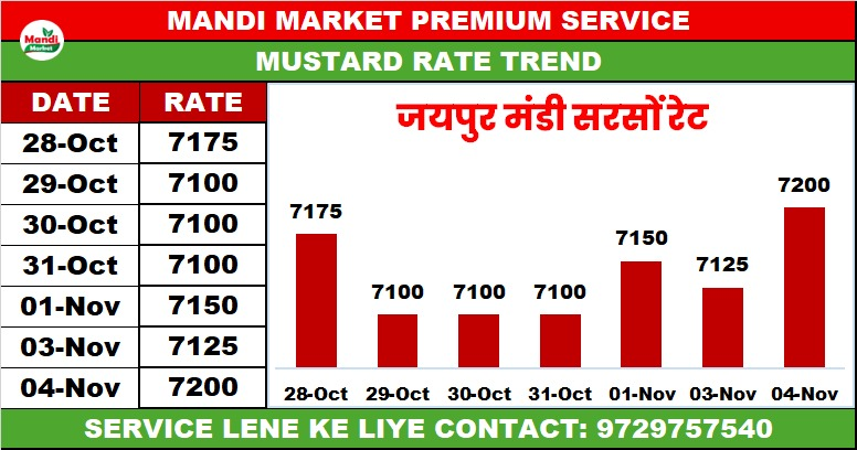 जयपुर (JAIPUR) सरसों भाव ₹7100 मंदी ₹25