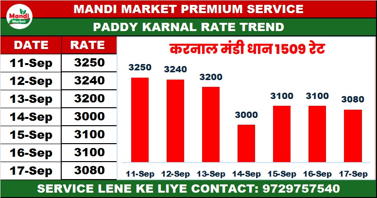 धान 1509 हाथ भाव ₹ 3100 से ₹ 3231 मंदी 80