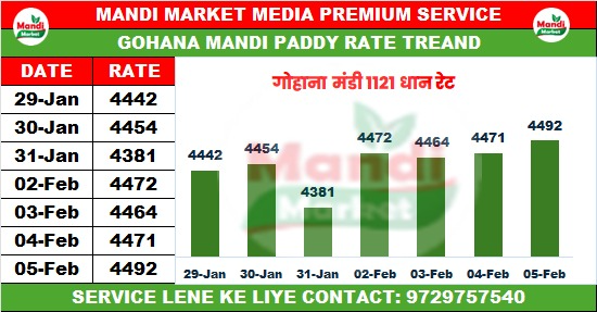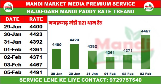 धान 1121 हाथ भाव ₹ 4460 तेजी 20