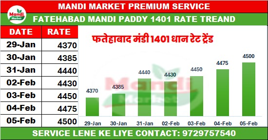 धान 1401 हाथ भाव ₹ 4500 तेजी 25