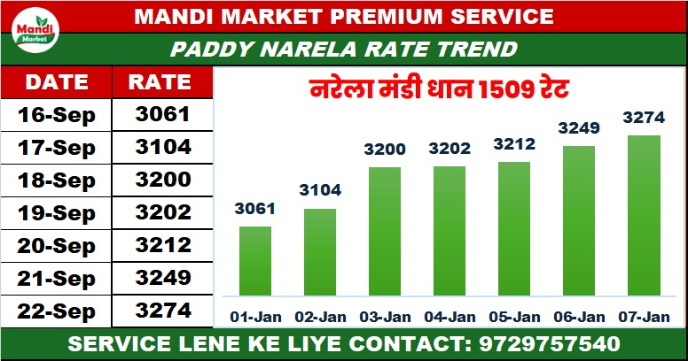 धान 1509 हाथ भाव ₹ 3274 तेजी 25
