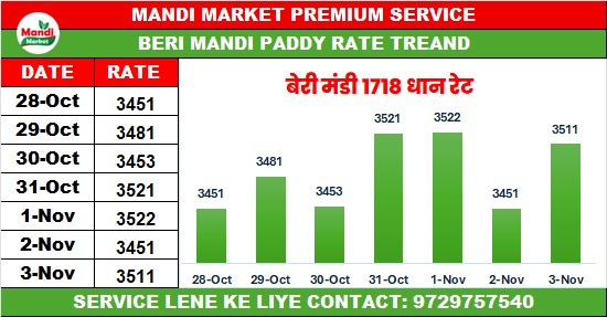 आज धान की मंडियों मे तेजी या मंदी की लहर जाने इस रिपोर्ट में 03 नवम्बर 2025
