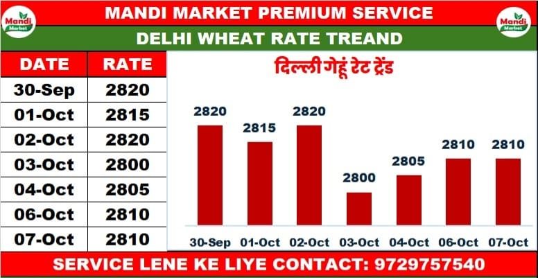 गेहूं नेट भाव ₹ 2800 भाव स्थिर